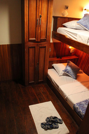 部屋はバンクタイプのスタンダード、ツインベッドのデラックス、ダブル+シンングルベッドのスイートがある。