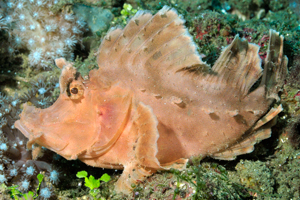 resident marine life such as rhinopias, many assorted frogfish, mandarin fish, ghost pipefish, harlequin shrimp, flamboyant