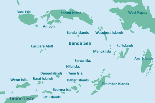 インドネシア最後の秘境といわれるアンボンの南東のティモールから西パプアまでのの列島。火山等の周囲列島でリングオヴファイアーとも呼ばれている。まだ未知の環礁や隠れ根も多く、列島の東側は深い海溝があるために圧倒的な透明度を誇る。リヴアボードでしかアクセスできない果てなく続くリーフと孤島。素晴らしいウォールにはカラフルなサンゴが生息し、まさにダイバーにとって夢のエリア。アンボンから時計周りにマヌク島やレティ島を経由してフローレス島やマウメレやティモール島からタニンバール島に向かいクルーズなど多くのルートがある。9月から11月にかけては水深30m以上の深いウォールにハンマーヘッドの群れが回ってくる。その他バラクーダやアジの群れがそこかしこにいる。外洋のため天候に左右されることが多いので船に弱い人にはお薦めできない。バンダ島のバンダネイラという街はは香辛料の集積地であったため空港もある。この海域の北にはマックダイビングのアンボンがあり、ここをクルーズの起点にするリヴアボード多い。