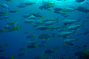 主な生物はギンガメアジ・ロウニンアジ・シマアジ・ツムブリ・オーシャニックトリガーフィッシュ、ブラックフィン&シェブロンバラクーダ、カンムリブダイ、オオセ、フュージィリアー。スイートリップス、テングハギモドキ等の回遊魚の群れやマンタ、サメからピグミーシーホースなどのマクロの生物まで生息する海洋生物の宝庫である。