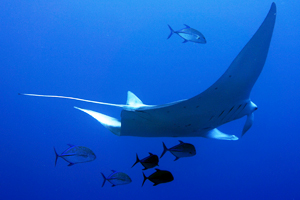 At Magic Mountain, a hidden root east of Mysore, there is a good chance of encountering the pelagic OceanicManta (Manta birostris), which can grow up to 6 meters in length.