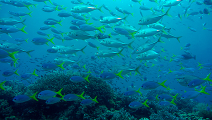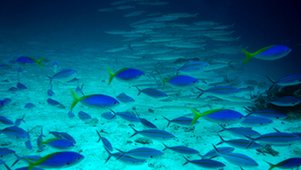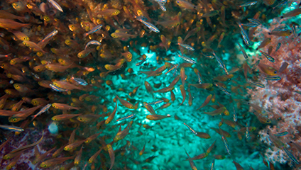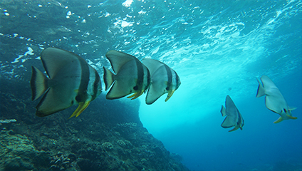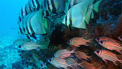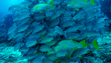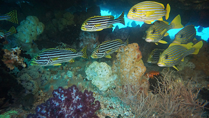 Lao Lao, Mioskon : Schooling Dark-Tailed Seapearch / Blue Ribbon Sweetlips