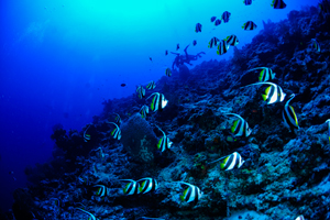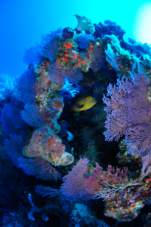 2000m級の深海のドロップオフに囲まれているため、すばらしい透明度が期待できます。