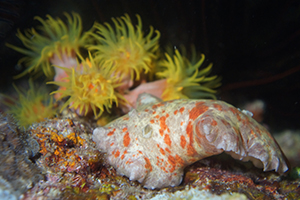 小さなオーバーハングあるスロープ。ウミウシも豊富に」生息。