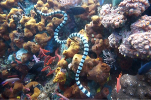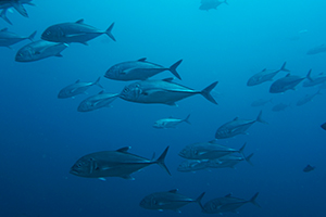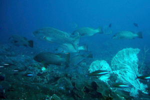 The island is surrounded by a coral wall with sponges and large seafans. All of the sites are similar to Komodo because of the large number of snappers along the walls and barrel sponges. The strong currents bring schools of jacks, snappers, swallows, and peppers, as well as reef sharks. In the Verde Island Channel, large schools of dolphins can be seen