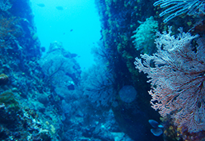 垂直のウォールに沿って潜る。